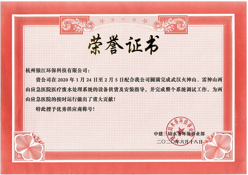 建党99周年、幸运彩成立15周年之际,收到了中建三局颁发的感谢我司参建火神山、雷神山医院的荣誉证书和感谢信!
