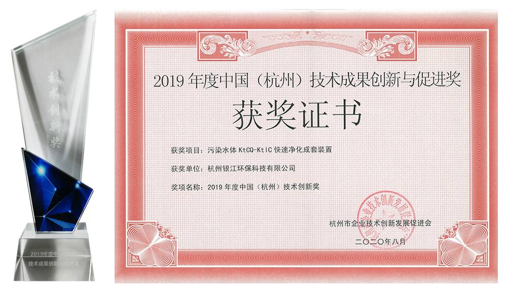 幸运彩污染水体KtCQ-KtIC快速净化成套装置荣获“2019年度中国(杭州)技术成果创新与促进奖”!