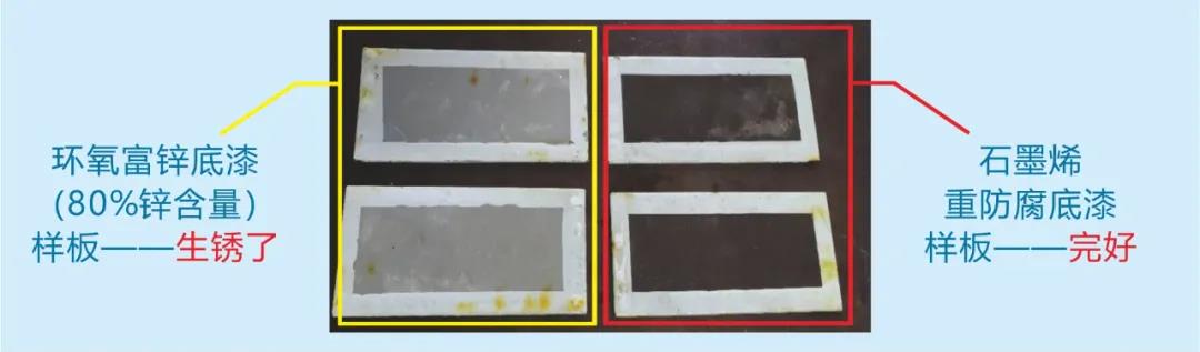 石墨烯防腐涂料与传统涂料海水浸泡100天后对比图