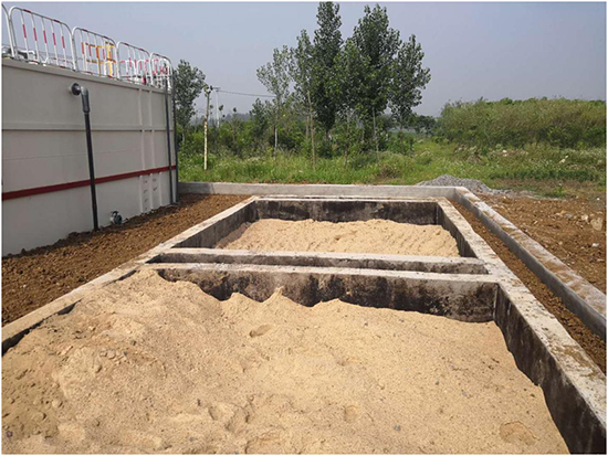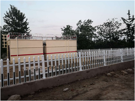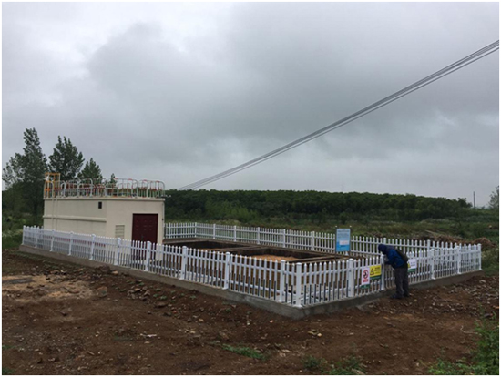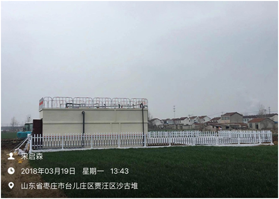 (5)沙古堆村:该终端为地上式,设计污水处理水量为50吨/天,于2017年12月19日进场施工,2018年1月23日设备安装调试完成,经处理后生活污水达到《城镇污水处理厂污染物排放标准》(GB18918-2002)一级A标准,出水外排,终端总占地面积187平方米。