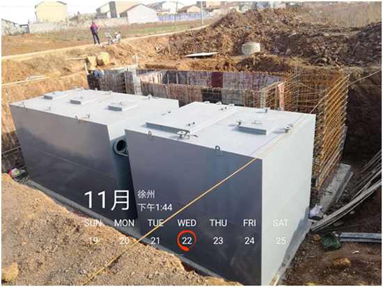 (2)影山村:该村共有污水处理终端3座,其中2座为地下式,1座为地上式,每座终端设计污水处理水量均为30吨/天,于2017年10月19日进场施工,2018年6月25日设备安装调试完成,经处理后生活污水达到《城镇污水处理厂污染物排放标准》(GB18918-2002)一级A标准,出水外排,终端总占地面积510平方米。