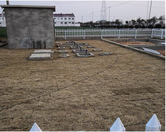 (4)房上村:该村共有污水处理终端2座,且均为地下式,每座终端设计污水处理水量分别为80吨/天、100吨/天,于2017年11月14日进场施工,2018年1月24日设备安装调试完成,经处理后生活污水达到《城镇污水处理厂污染物排放标准》(GB18918-2002)一级A标准,出水外排,终端总占地面积578平方米。