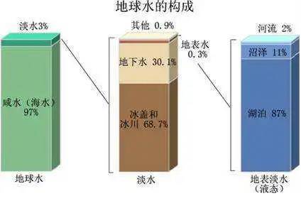 地球上陆地淡水仅占地球总储水量的3%,与人类生活最密切的江河、淡水湖和浅层地下水等淡水更是仅占总淡水储量的0.3%。
