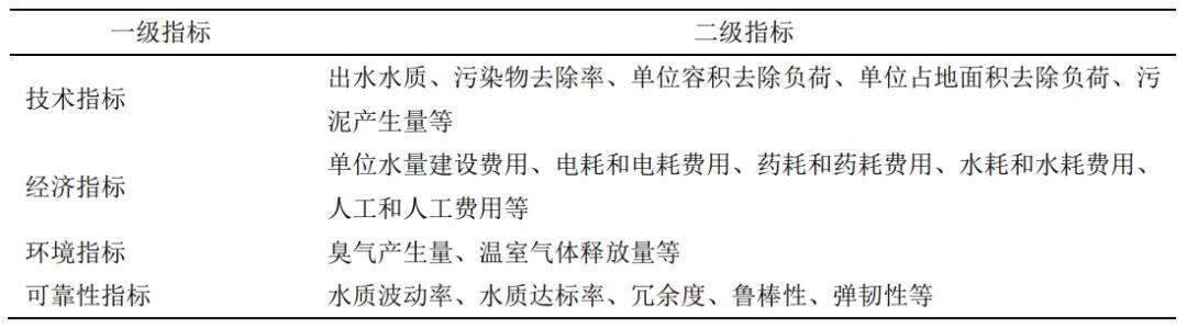 表1 污水再生处理技术与工艺评价指标体系