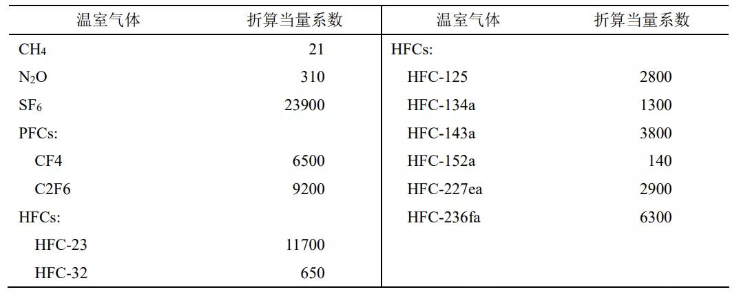 表2 典型非CO2温室气体的折算当量系数