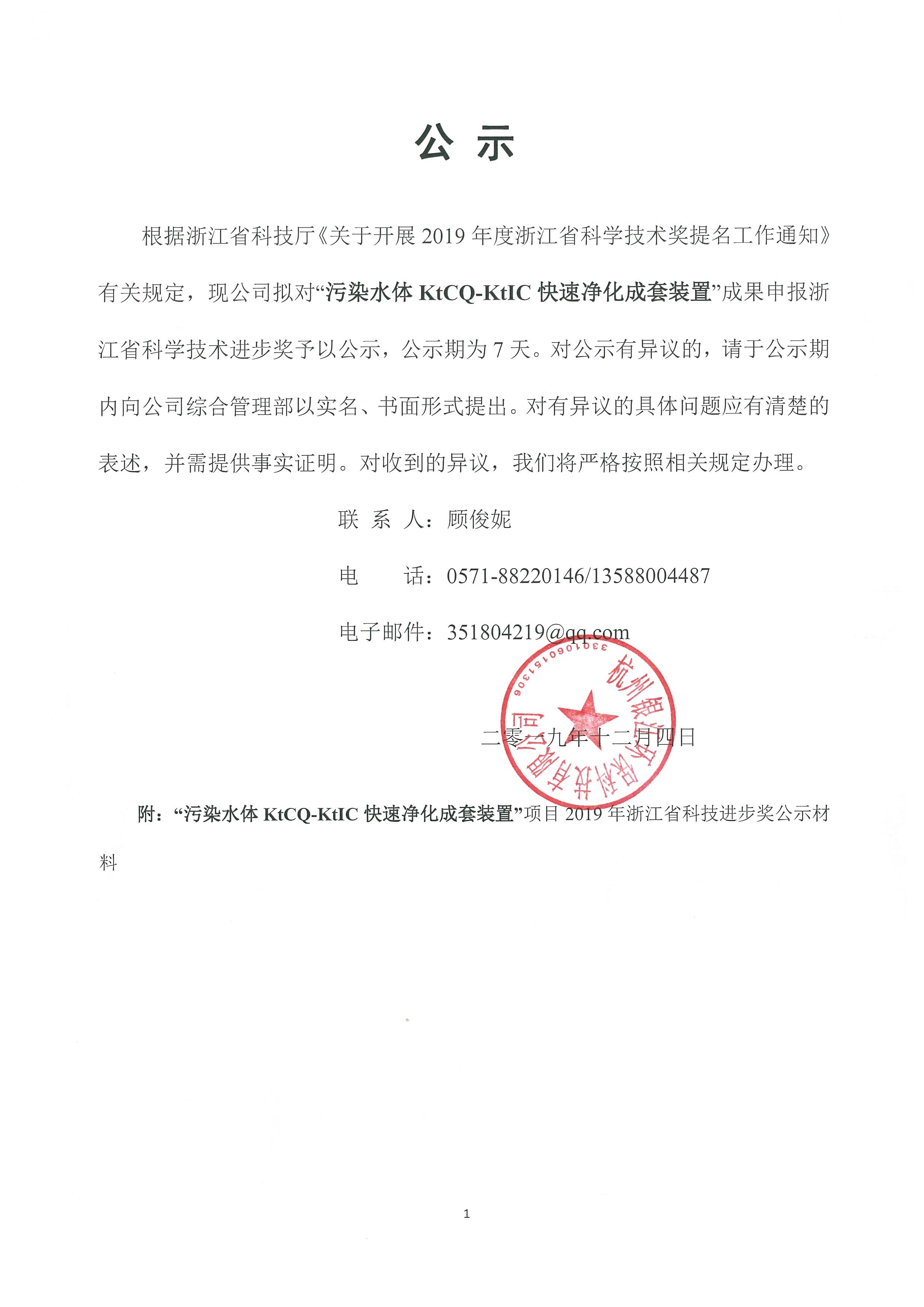 浙江省科学技术进步奖公示发布日期:2019-12-04