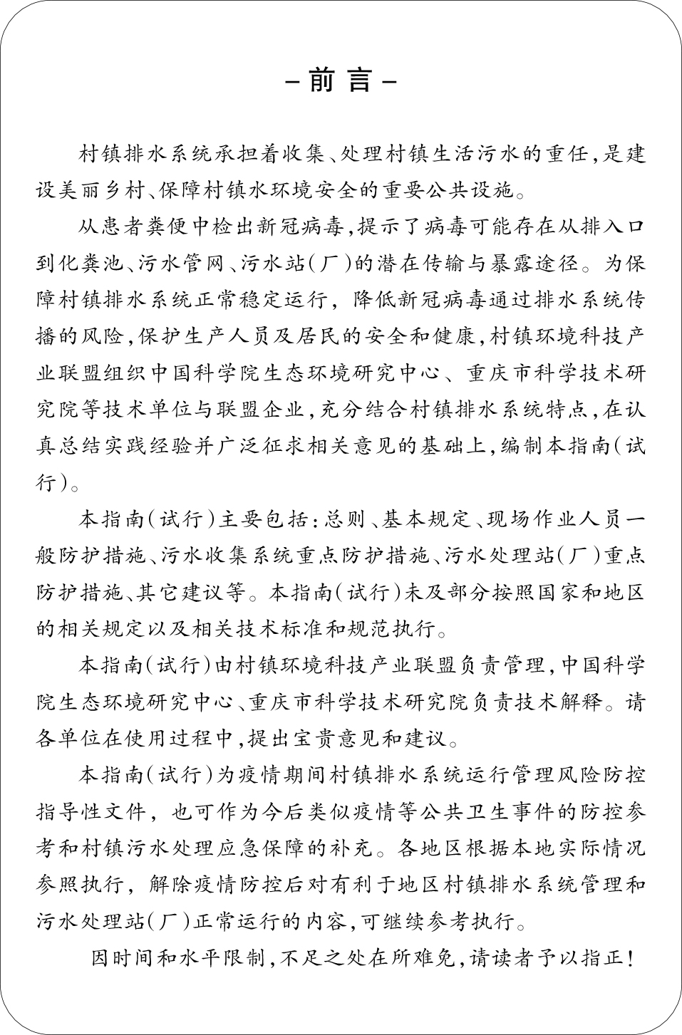 为了更好地指导村镇污水处理领域的各参与主体科学管理、有效防控,保障村镇排水系统正常稳定运行,降低疫情期间病毒通过排水系统传播风险,保障生产人员及居民的安全和健康,由中国科学院生态环境研究中心、村镇环境科技产业联盟、重庆市科学技术研究院主编,幸运彩应邀参编的《疫情期间村镇排水系统运行管理风险防控工作指南》(试行)(以下简称“《指南》”)于3月23日正式发布。