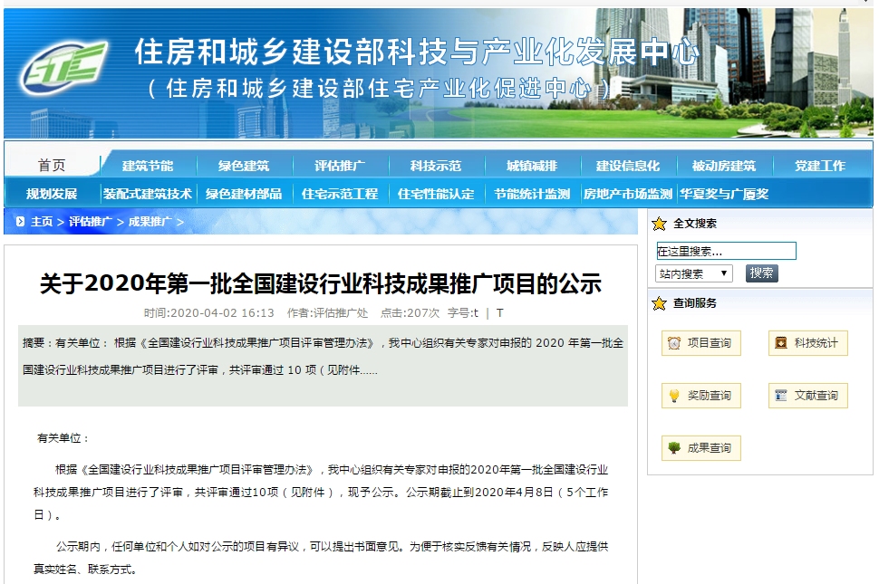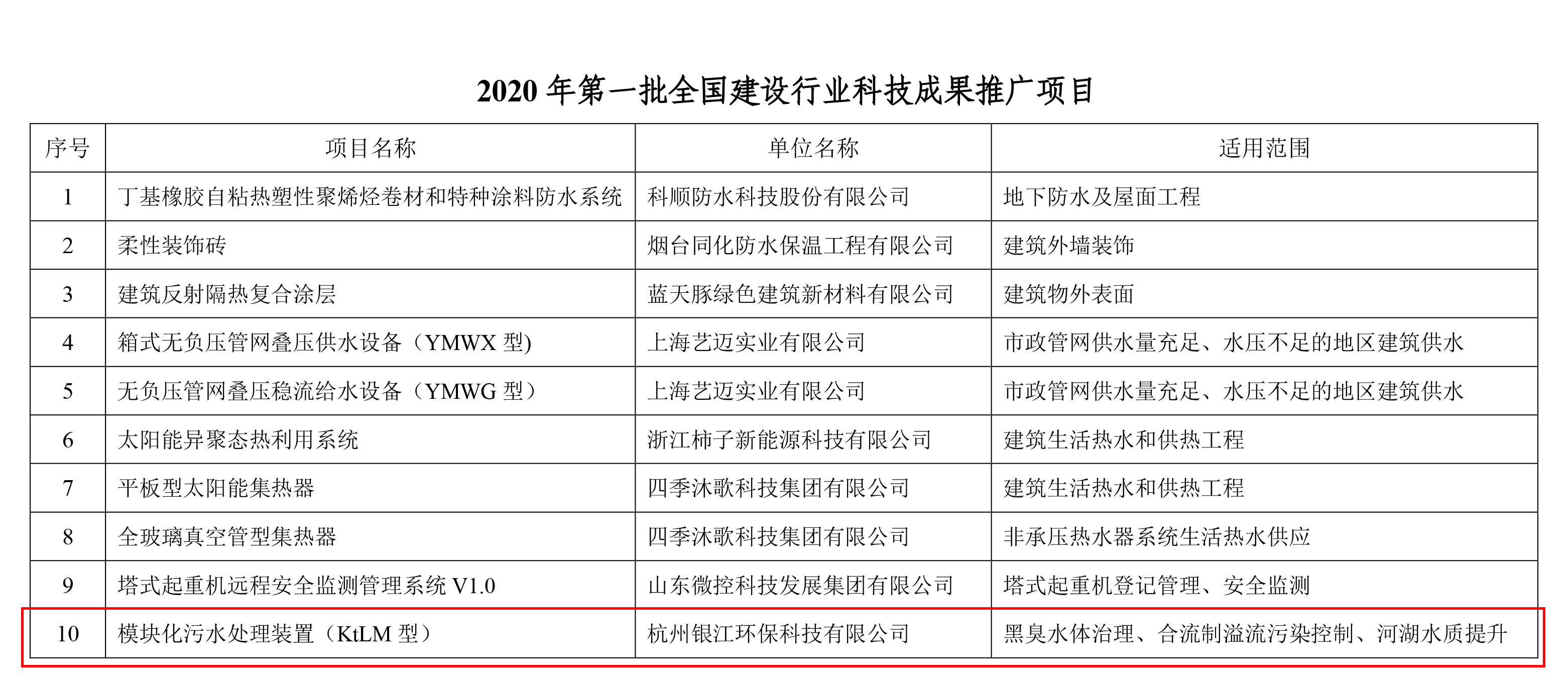 祝贺幸运彩“模块化污水处理装置(KtLM型)”入选2020年第一批全国建设行业科技成果推广项目。