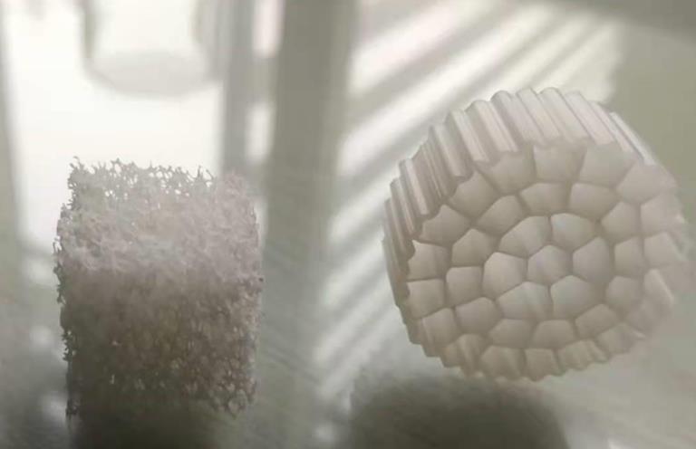 微生物赖以栖息的新型载体研制开发是移动生物膜法处理废水的关键技术之一,其性能直接影响着污水的处理效果和投资费用。科研工作者以改进填料为突破口,不断推动移动生物膜法的发展。目前的悬浮填料大多是由聚乙烯、聚丙烯及其改性材料、聚氨酯泡沫体等制成的,比重接近于水,长了生物膜以后,在正常的曝气强度下极易达到全池流化翻动。悬浮填料的形状通常为球状、立方体、圆筒状或粒状,一般认为球状有良好的水力学特性,是最理想的形状。但受到生产技术的限制,材料作成球状很困难;而圆筒状填料当其长径比为1时接近于球状,因此PE悬浮填料一般选择圆筒状。聚氨酯悬浮填料依靠切割工艺,因此聚氨酯海绵填料选择正方体。一般来说,国内使用的载体外形尺寸比国外的要大,这主要是受整个工艺和出水格栅的限制,特别是国内进水复杂,预处理不到位,水质水量波动大等因素影响。(下图左边为亲水性聚氨酯悬浮填料,右边为HDPE悬浮填料)