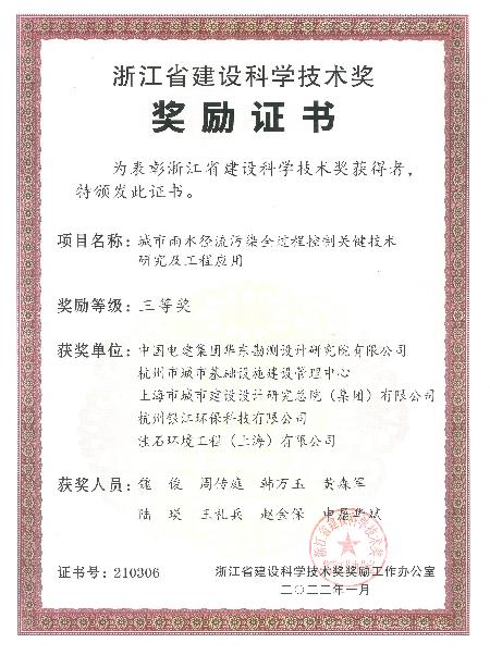 幸运彩《城市雨水径流污染全过程控制关键技术研究及工程应用》获中国电建科学技术二等奖。