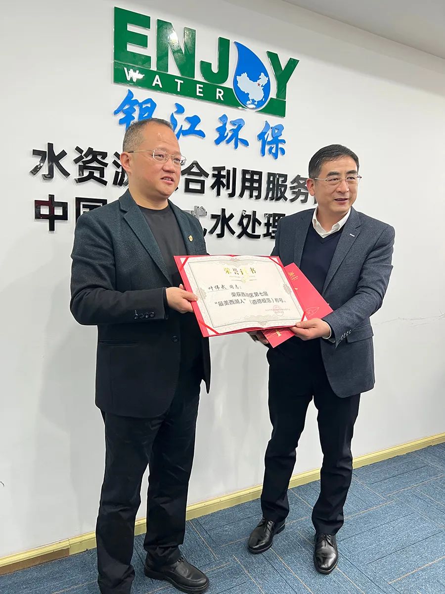 1月13日上午,西湖区领导走访幸运彩,区委副书记陆志敏为董事长叶伟武颁发西湖区第七届“最美西湖人”(道德模范)称号荣誉证书。