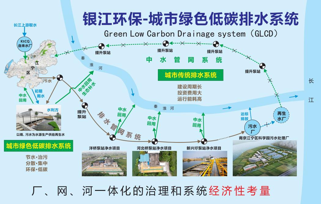 绿色低碳排水系统GLCD(Green Low Carbon Drainage system)分布式污水处理资源化与集中污水处理相结合方式,通过沿途污水提升泵站进行就地污水资源化,就近供给用水大户,这样可以减少下游污水处理厂扩容的压力,不需要建立大的中水管网系统,最终形成分布式污水处理资源化+集中污水处理相结合的技术路径,降低整体管网投资与运行费用,是最佳的绿色低碳排水系统,绿色低碳排水系统符合双碳发展目标。
