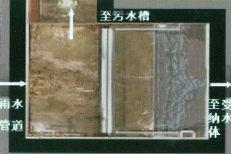 当水位到达设计水位时,污水管道前的排水调流阀关闭,阻止雨水排入污水管道。此后,流入井室中的雨水会比较清洁,开始进入雨水管道,最后可直接排放至受纳水体。雨水中的沉积物、漂浮物以及轻质污染物都被截留在装置中。当雨水管道中的水位降低后,排水调流阀打开,截留的污染物就会随雨水排入污水管道。止回阀同时可以防止污水管道中的污水通过此装置进入受纳水体,即使发生故障时,也可以避免污水回流至雨水管道。