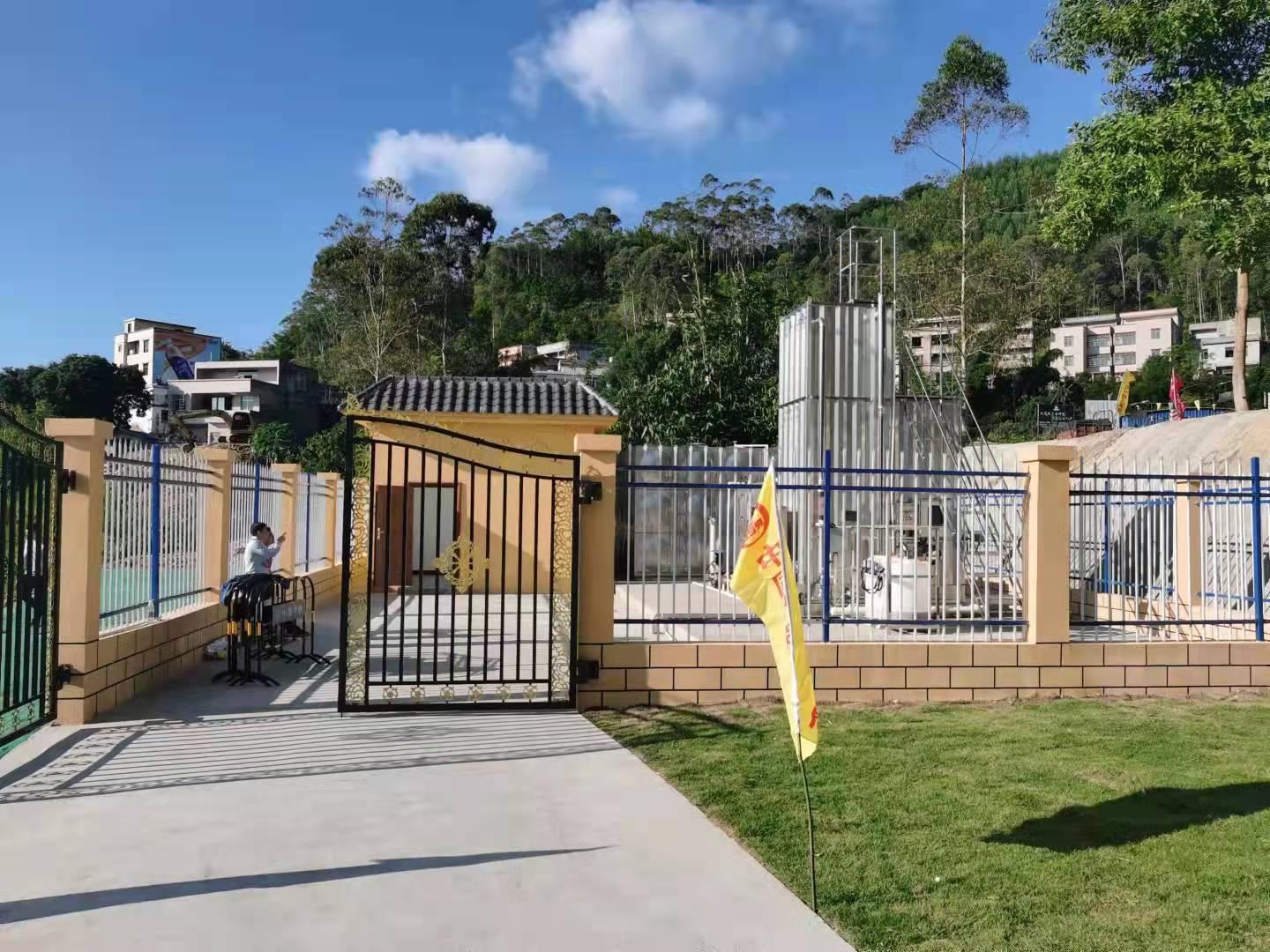 该供水站采用智慧型膜过滤净水设备及一体化泵站加压,确保水量、水质、水压满足群众需求。建筑风格具有岭南特色,水站墙面采用了暖黄色涂料,与周边环境相协调,达到了“功能便民环境美”的目标。