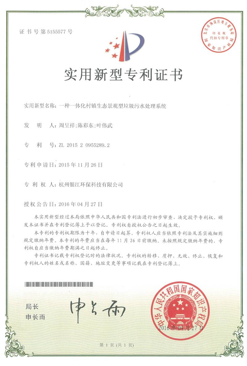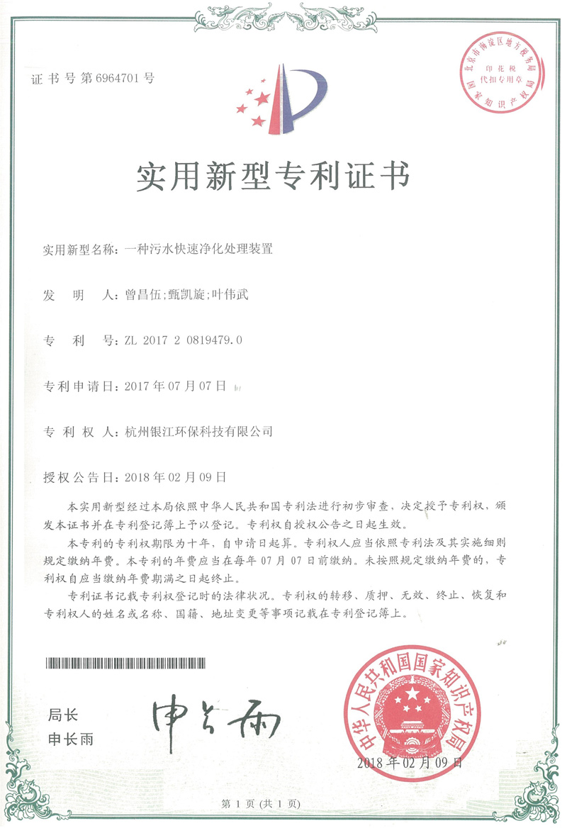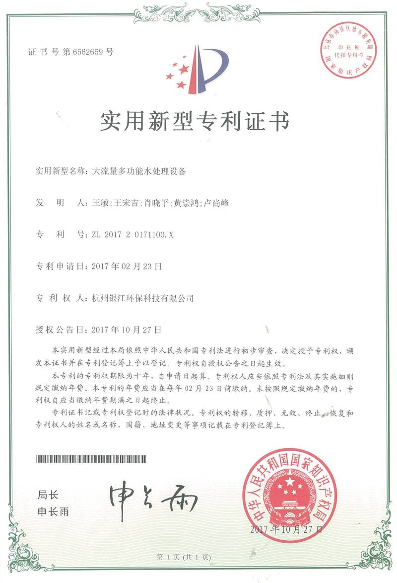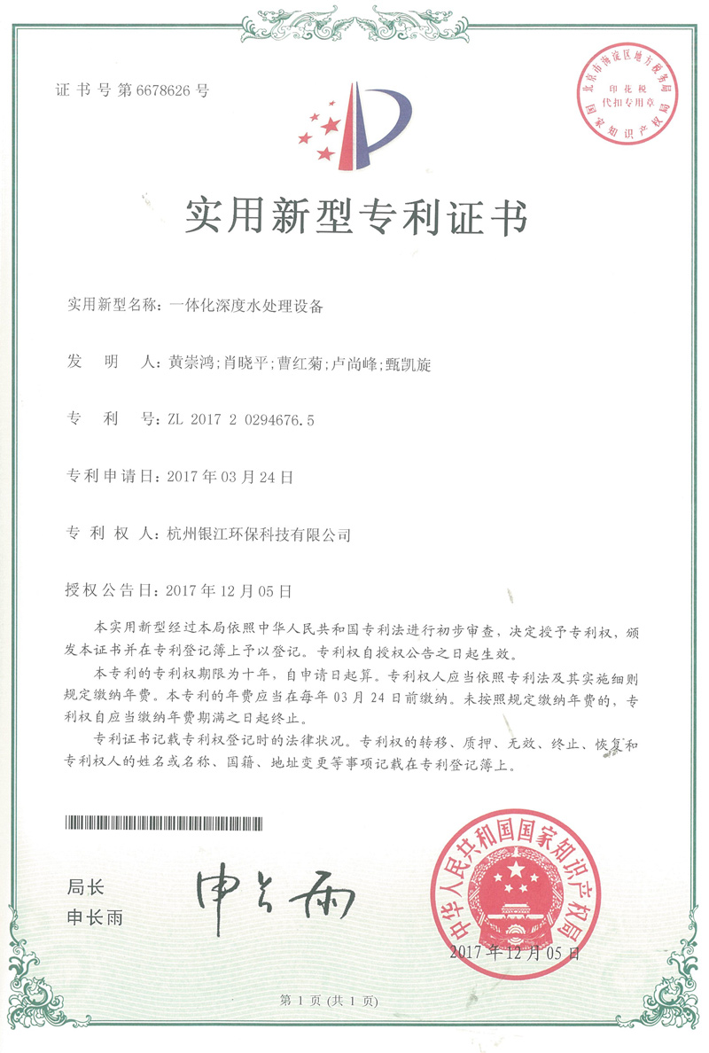 实用新型专利专注于分布式水处理解决方案